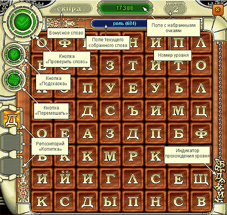 Для прохождения игры нужно составлять слова из букв, соединяя их по вертикали, горизонтали, диагонали.